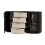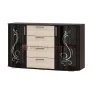 Помимо четырех выдвижных ящиков, с обеих сторон модель оснащена двумя распашными стеклянными створками, за которыми расположены полки для хранения вещей, темные ручки на выдвижных центральных ящиках прекрасно сочетаются с цветом ясень шимо корпуса комода.