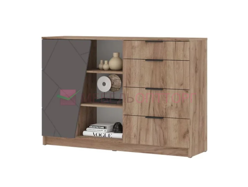 ОРЕГОН КМ 01 Комод 1400 (1400х950х400) Фасад МДФ АСФАЛЬТ СУПЕРМАТ,ДУБ КРАФТ ТАБАЧНЫЙ/Корпус ДУБ КРАФТ ТАБАЧНЫЙ от производителя ТДАнд в интернет-магазине мебели Мебельоптторг. Эту мебель можно недорого купить в Санкт-Петербурге в нашем интернет-магазине мебели, всего за 11688 рублей! Мы предлагаем как самовывоз с нашего склада, так и бережную доставку по городу Санкт-Петербург всего за 1490 рублей и по всей России. У нас есть и срочная доставка мебели, которая стоит дороже, но вы получаете товар в день заказа!