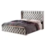 Корпус изделия выполнен из ЛДСП высокого качества, в дизайне модели используется велюр насыщенного цвета океан, высокое мягкое изголовье имеет декоративную стяжку с пуговицами, такой прием придает кровати элегантности.