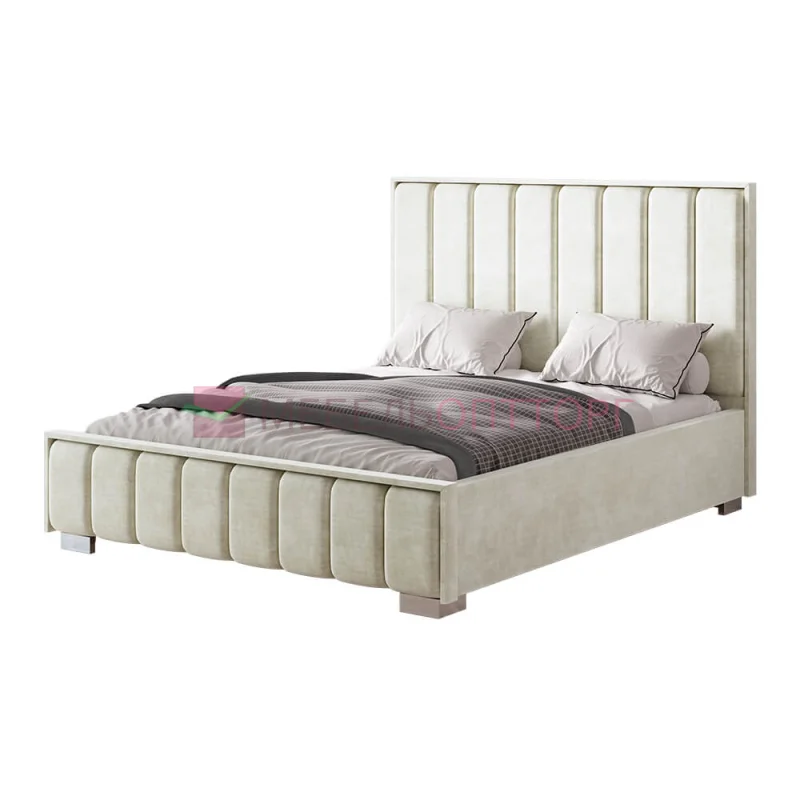 Изделие прекрасно будет смотреться в любом интерьере за счет велюра цвета графит, используемого в дизайне, корпус кровати изготовлен из высококачественной ЛДСП, мягкое изголовье имеет вертикальные стяжки, что придает модели элегантности.