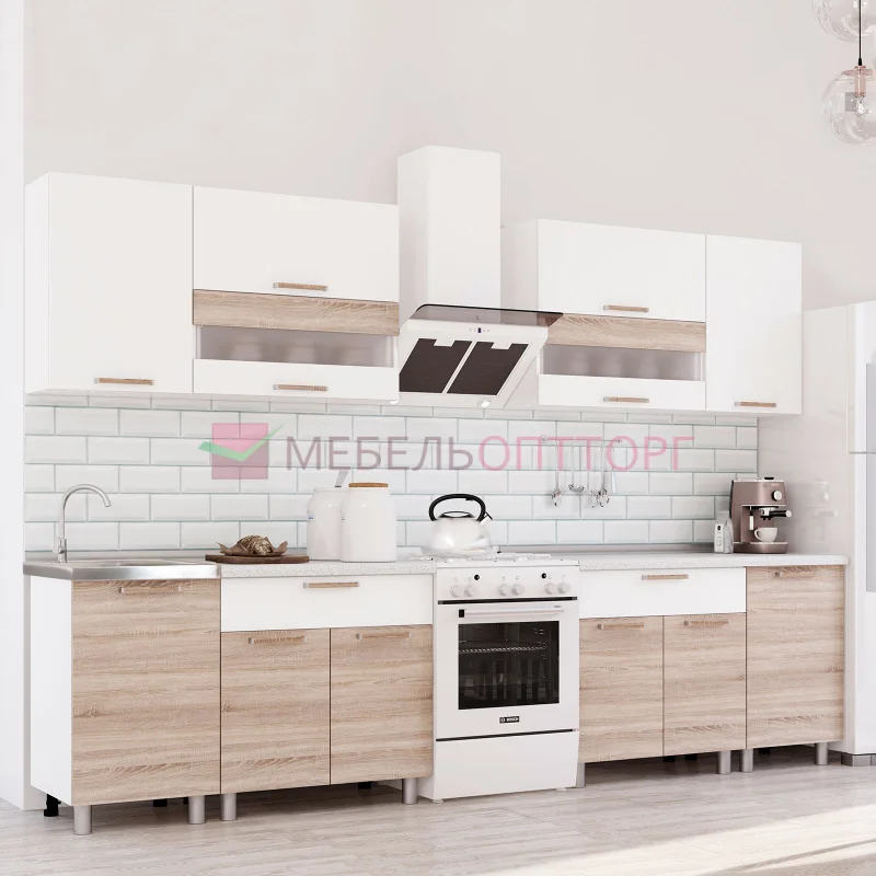 Кухня 2,4м "Айсбери" белый/сонома от производителя ТДАнд в интернет-магазине мебели Мебельоптторг. Эту мебель можно недорого купить в Санкт-Петербурге в нашем интернет-магазине мебели, всего за 24495 рублей! Мы предлагаем как самовывоз с нашего склада, так и бережную доставку по городу Санкт-Петербург всего за 1490 рублей и по всей России. У нас есть и срочная доставка мебели, которая стоит дороже, но вы получаете товар в день заказа!