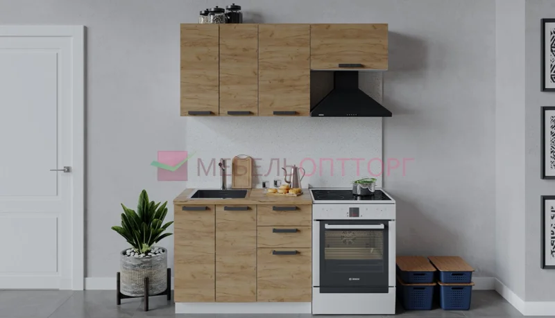 Кухня "Пасаденна" Комплектация 11 1,6 м белый/дуб вотан от производителя ТДАнд в интернет-магазине мебели Мебельоптторг. Эту мебель можно недорого купить в Санкт-Петербурге в нашем интернет-магазине мебели, всего за 21633 рублей! Мы предлагаем как самовывоз с нашего склада, так и бережную доставку по городу Санкт-Петербург всего за 1490 рублей и по всей России. У нас есть и срочная доставка мебели, которая стоит дороже, но вы получаете товар в день заказа!