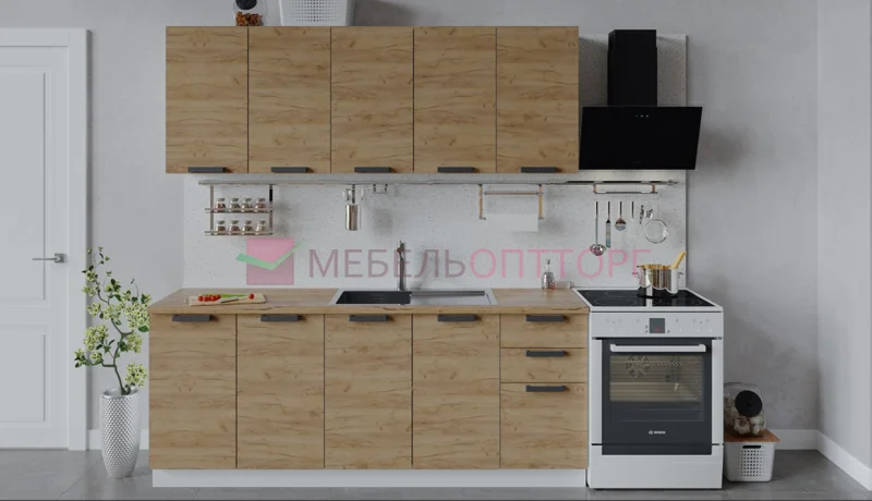 "Кухонный гарнитур ""Пасаденна"" белый/дуб вотан - стильный и практичный комплект из ЛДСП длиной 2,0 метра в современном стиле спроектирован для удобного ежедневного использования.