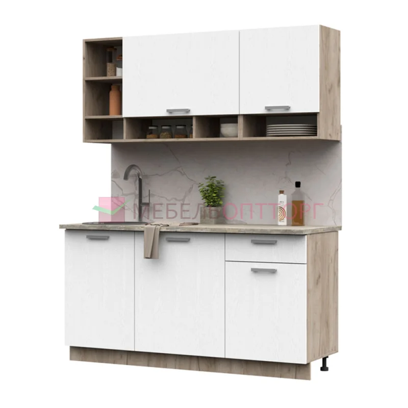 Кухня Рица 1,6 крафт серый/белый текстура от производителя ТДАнд в интернет-магазине мебели Мебельоптторг. Эту мебель можно недорого купить в Санкт-Петербурге в нашем интернет-магазине мебели, всего за 18338 рублей! Мы предлагаем как самовывоз с нашего склада, так и бережную доставку по городу Санкт-Петербург всего за 1490 рублей и по всей России. У нас есть и срочная доставка мебели, которая стоит дороже, но вы получаете товар в день заказа!
