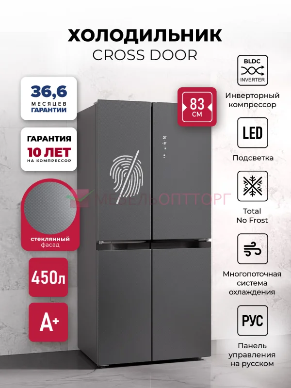 Холодильник трехкамерный отдельностоящий с инвертором LEX LCD450 graphite point / Отдельностоящий трехкамерный