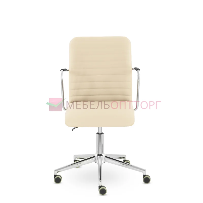 Уникальный каркас из металла и узкие хромированные подлокотники с небольшими пластиковыми накладками придают конструкции легкость и прочность. Горизонтальные строчки на спинке подчеркивают элегантный и современный вид.