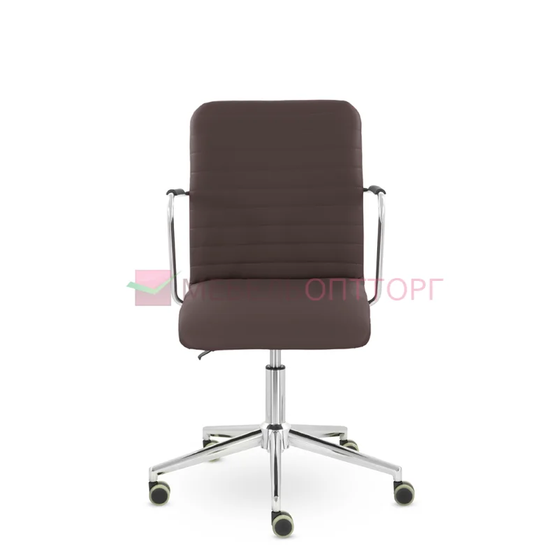 Уникальный каркас из металла и узкие хромированные подлокотники с небольшими пластиковыми накладками придают конструкции легкость и прочность. Горизонтальные строчки на спинке подчеркивают элегантный и современный вид.