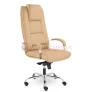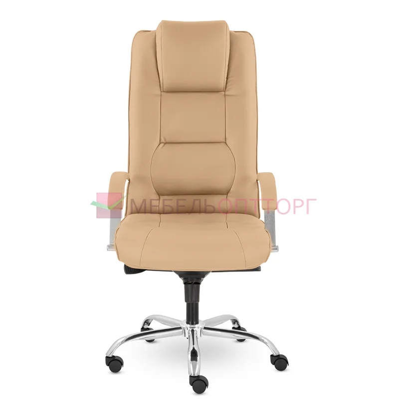 Грациозное кресло руководителя с ярко выраженным мягким подголовником. Спинка и сидение имеют горизонтальные прострочки, делящие их на квадраты. Хромированные подлокотники с мягкими накладками. Кресло стоит на хромированной крестовине, максимальная нагрузка которой 120 кг.