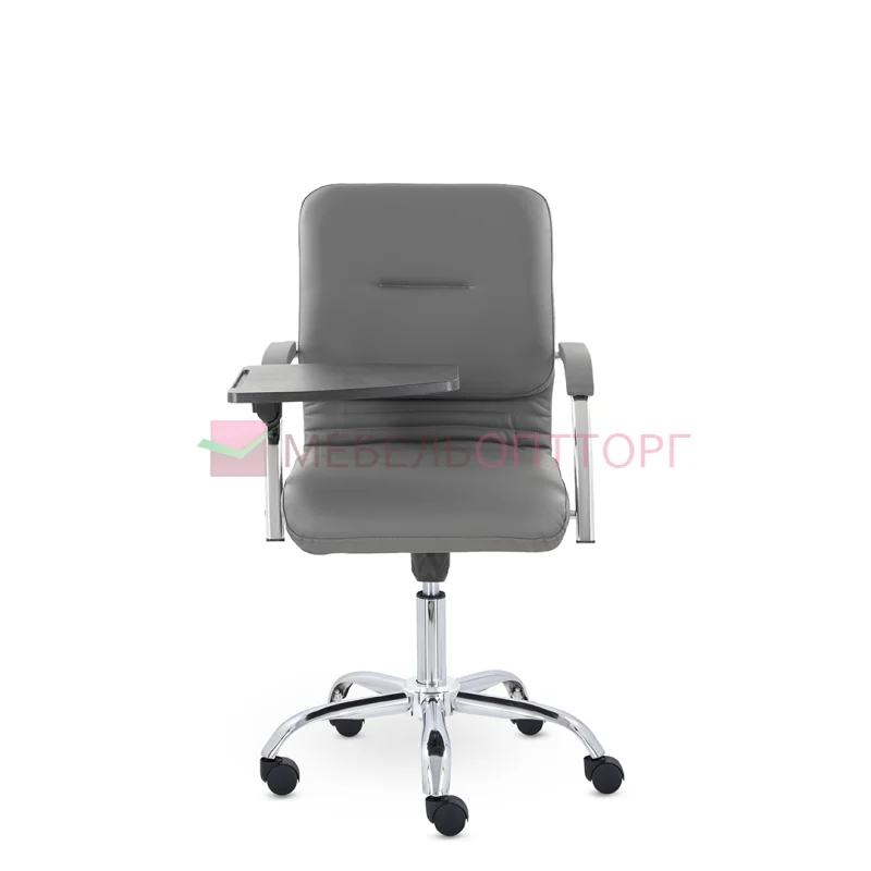 Улучшенная комплектация кресла включает горизонтальные прострочки, соединяющие спинку и сиденье, что придает креслу современный нео-классический стиль. Удобные накладки обеспечивают комфортную поддержку рук и способствуют их расслаблению. К креслу прилагается столик, выполненный из пластика. Модель отлично подойдет для конференц-залов, переговорных, актовых залов.