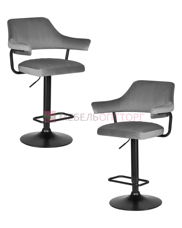 Описание Набор 2 шт Стул барный CHARLY BLACK, серый велюр (MJ9-75)