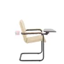 Элегантное конференц-кресло для посетителей имеет широкий выбор расцветки обивки кресла, мягкие подлокотники с накладками люкс и окрашенный в черный цвет каркас. К креслу прилагается столик, выполненный из пластика. Модель отлично подойдет для конференц-залов, переговорных, актовых залов.