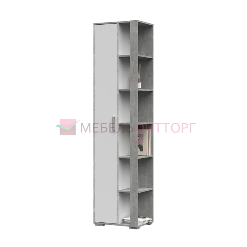 Дизайн торцевого пенального шкафа Денвер ПН03 созвучен с главной линией серии и выполнен в том же светлом тоне сдержанных оттенков. Его комбинированная конструкция включает в себя открытые торцевые полки с вертикальной планкой, на которых с удобством можно разместить декоративные элементы, книги или необходимые для быстрого доступа мелочи, а так же закрытую секцию с единственной створкой, которая открывает доступ к пяти полкам, располагающимся друг над другом.