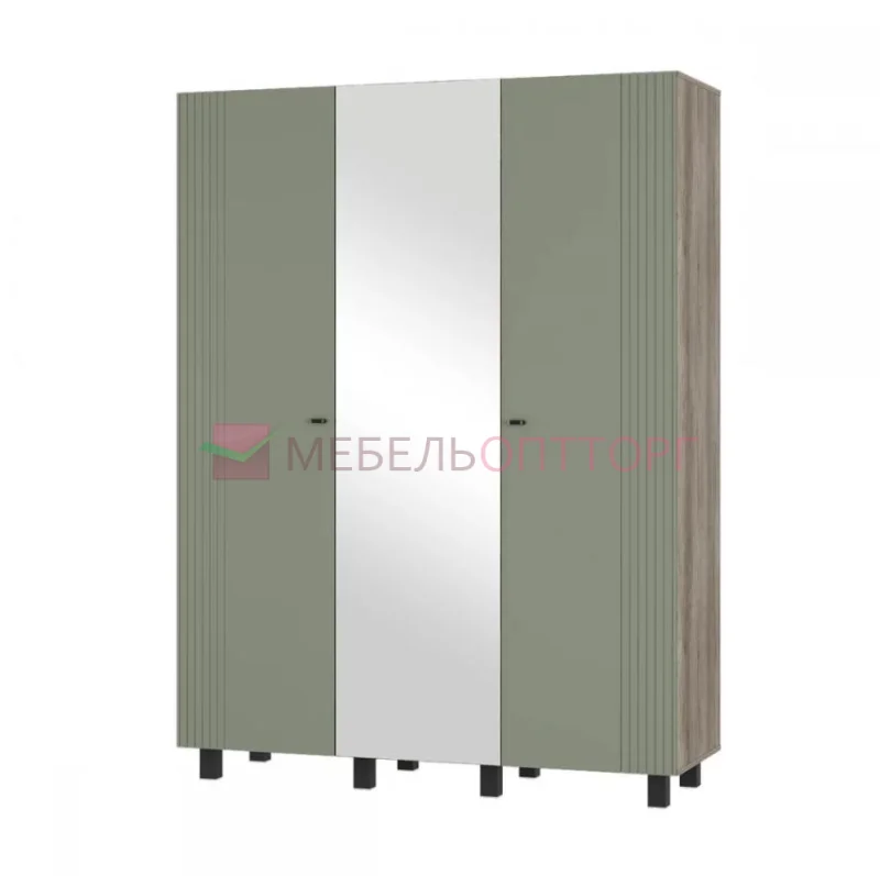 Шкаф 3-х створчатый Олива ШК-08 — это элегантное и функциональное решение для любого интерьера. Коллекция представлена в тренировках пудровых оттенках. Фрезеровка на фасадах создает интересные текстурные контрасты и визуальные акценты. Кроме того, этот элемент декора также помогает скрыть мелкие загрязнения, что упрощает уход за мебелью. Черные металлические накладные ручки и петли с доводчиками обеспечивают удобство в использовании.