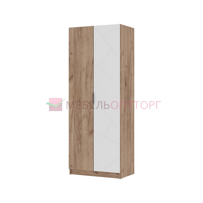 ОРЕГОН ШК 02 Шкаф 2х-створчатый (800х2100х500) Фасад МДФ БЕЛЫЙ СУПЕРМАТ,ДУБ КРАФТ ТАБАЧНЫЙ/Корпус ДУБ КРАФТ ТАБАЧНЫЙ