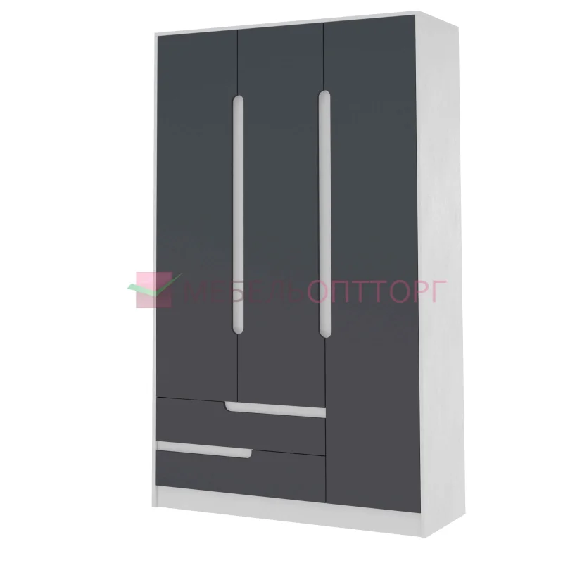 Шкаф 3-ств. Гавана (1236*2200*510) белый/серый графит