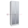 Шкаф оборудован штангой для плечиков и двумя полками, сверху и снизу.