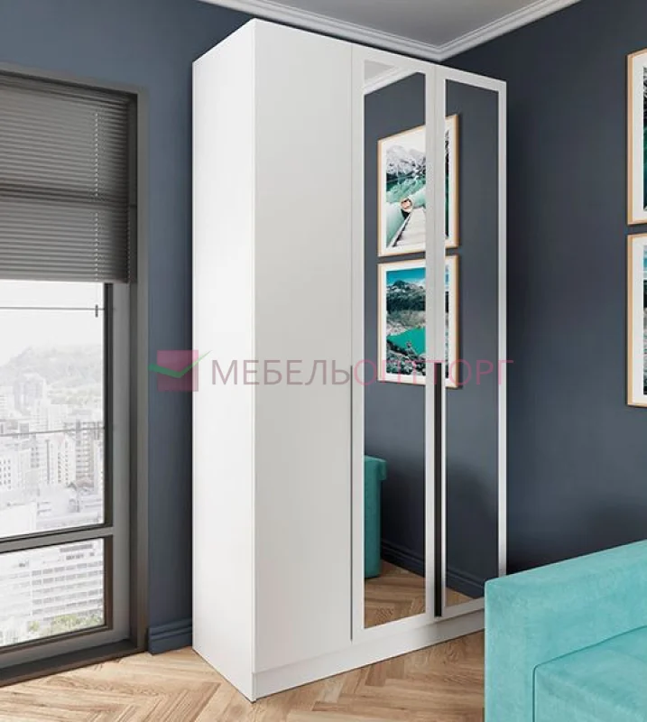 Описание Шкаф Мадрид (1,2) с зеркалом белый