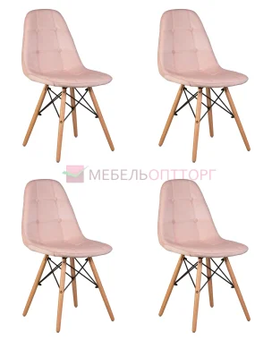 Набор 4 шт Стул обеденный BENNET, ножки светлый бук, пудрово-розовый велюр (HLR-39)