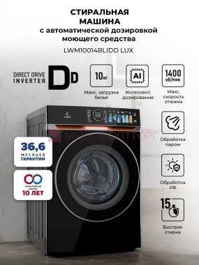 Стиральная машина с инвертором и паром LEX LWM10014BLIDD Lux