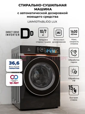 Стирально-сушильная машина с инвертором и паром LEX LWM10714BLIDD Lux