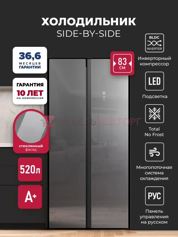 Описание Холодильник двухкамерный отдельностоящий с инвертором LEX LSB520SlGID