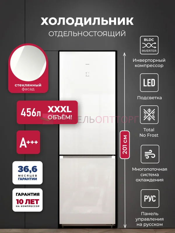 Описание Холодильник отдельностоящий с инвертором LEX LKB201WGIDMax