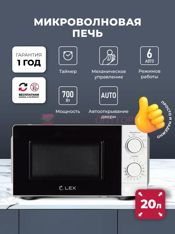 Добавить отзыв о товаре:Микроволновая печь отдельностоящая LEX FSMO 20.01N WH