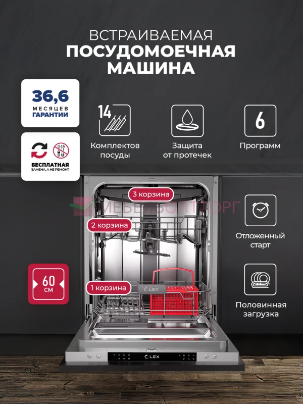 Описание Посудомоечная машина встраиваемая LEX PM 6063 A