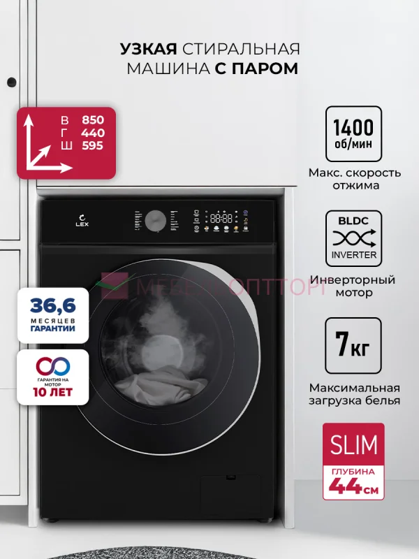 Стиральная машина LEX Slim — это качество на долгие годы, а увеличенная гарантия 36,6 месяцев — это лишнее тому подтверждение!