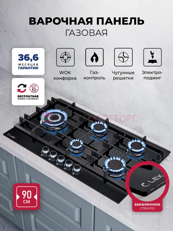 Варочная панель газовая LEX GVG 955 BBL Газовая варочная панель