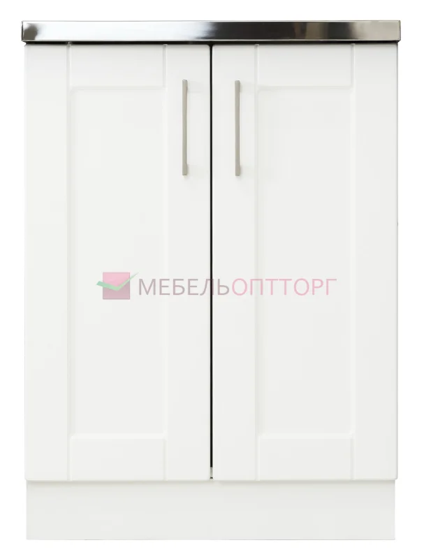 КМ.004.03-015-00 Тумба под мойку 600/600/850 (Белый,Модерн Новый,Белое дерево,Ручка -скоба 128мм 1017 SATIN NICKEL)