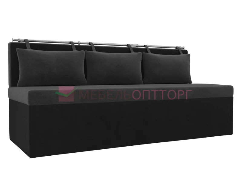 Прямой диван Метро станет необычным дополнением Вашей кухни. Сдержанный дизайн выглядит эстетично и аккуратно. Спинка дополняется съемными подушками, закрепленными на металлической трубе. Конструкция функциональна, легко трансформируется в односпальную кровать.