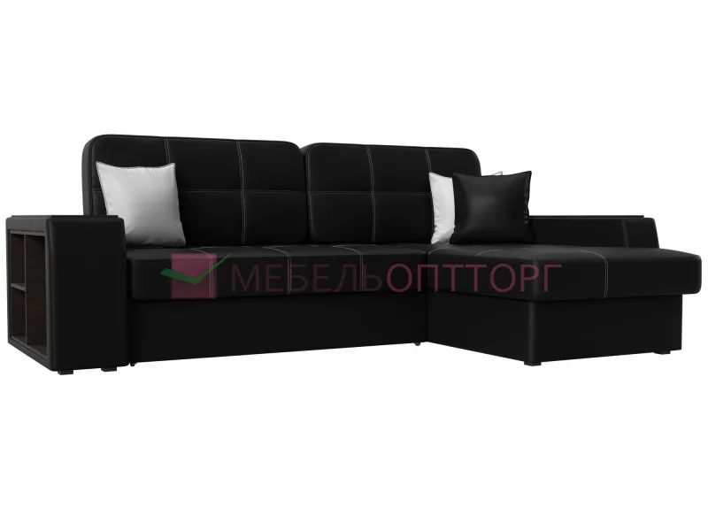 Шикарный угловой диван Брюссель удобен и функционален в использовании. Подлокотники выполняют роль мини-столиков. Одна из боковин дополнена книжными полками, декорированным «под дерево». Изделие оснащено удобным механизмом трансформации в двуспальную кровать.