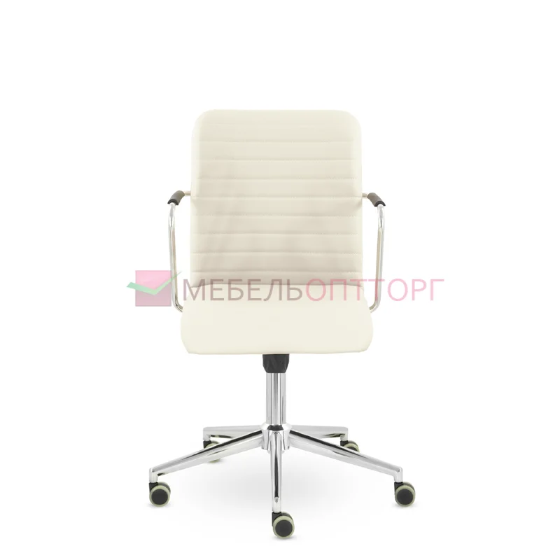 Уникальный каркас из металла и узкие хромированные подлокотники с небольшими пластиковыми накладками придают конструкции легкость и прочность. Горизонтальные строчки на спинке подчеркивают элегантный и современный вид. Хромированная крестовина выдерживает до 120 кг.