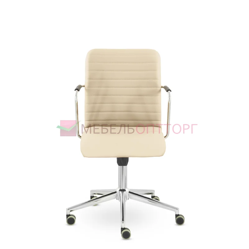 Уникальный каркас из металла и узкие хромированные подлокотники с небольшими пластиковыми накладками придают конструкции легкость и прочность. Горизонтальные строчки на спинке подчеркивают элегантный и современный вид. Хромированная крестовина выдерживает до 120 кг.
