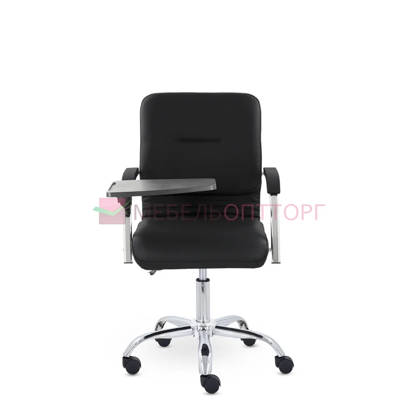 Улучшенная комплектация кресла включает горизонтальные прострочки, соединяющие спинку и сиденье, что придает креслу современный нео-классический стиль. Удобные накладки обеспечивают комфортную поддержку рук и способствуют их расслаблению. К креслу прилагается столик, выполненный из пластика. Модель отлично подойдет для конференц-залов, переговорных, актовых залов.