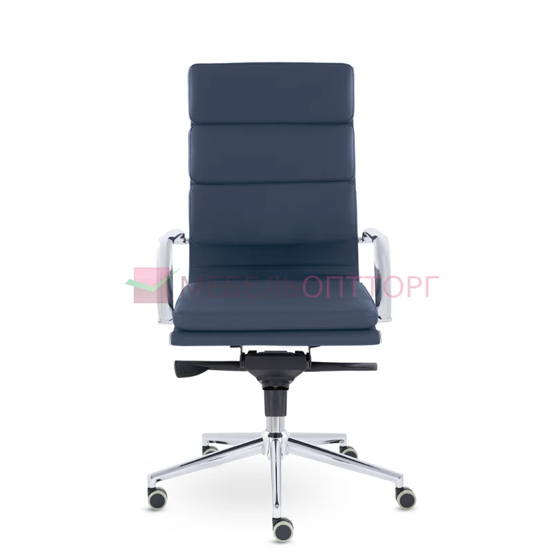 Кресло руководителя в современном металлическом каркасе. Комфорт создается благодаря мягким элементам спинки и сиденья. Зеркальный хромированный каркас и узкая крестовина задают современный стиль. Кресло отлично смотрится в строгих и открытых кабинетах. Механизм качания - мультиблок.