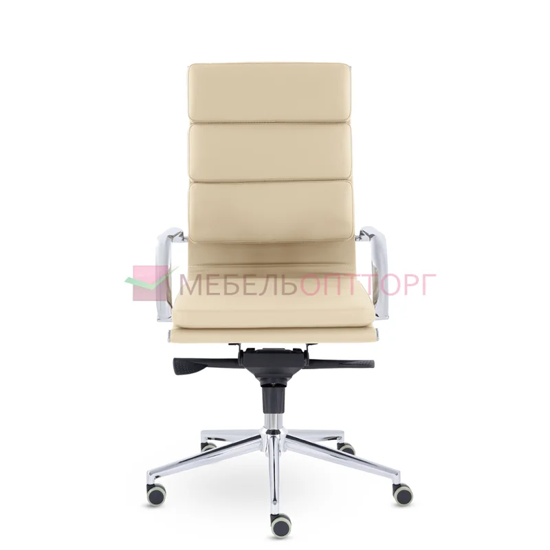 Кресло руководителя в современном металлическом каркасе. Комфорт создается благодаря мягким элементам спинки и сиденья. Зеркальный хромированный каркас и узкая крестовина задают современный стиль. Кресло отлично смотрится в строгих и открытых кабинетах. Механизм качания - мультиблок.