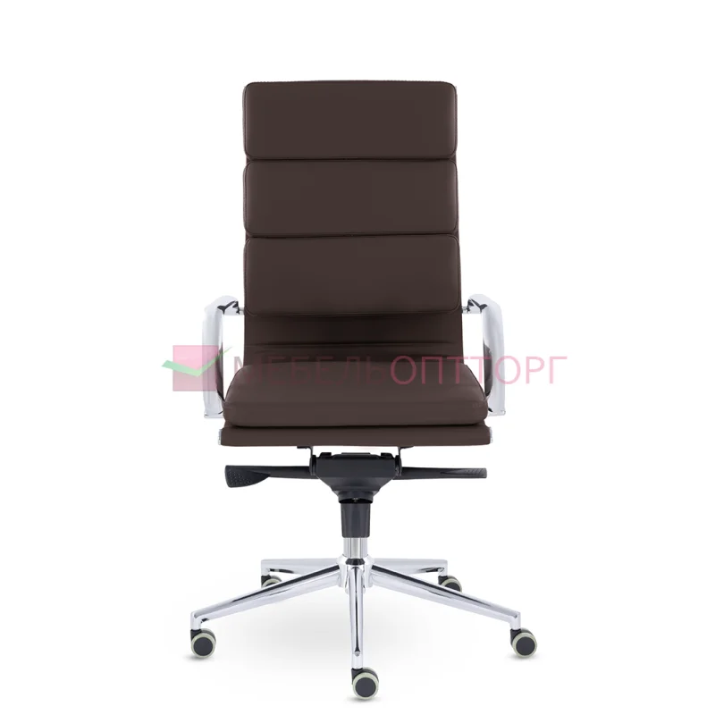 Кресло руководителя в современном металлическом каркасе. Комфорт создается благодаря мягким элементам спинки и сиденья. Зеркальный хромированный каркас и узкая крестовина задают современный стиль. Кресло отлично смотрится в строгих и открытых кабинетах. Механизм качания - мультиблок.