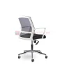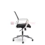 Кресло стоит на хромированной крестовине, что обеспечивает максимальную нагрузку в 120 кг. Широкая эргономичная спинка обтянута прочной сеткой, пластиковые подлокотники белого цвета, соединенные с каркасом.