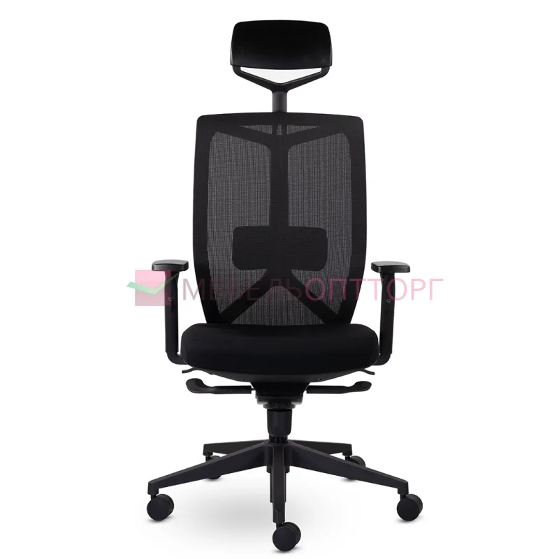 Основная особенность кресла - регулируемая пластиковая поясничная поддержка и регулируемые по высоте и ширине подлокотники. Спинка обтянута прочной корейской сеткой, сиденье обито нейлоновой тканью, пенополиуретан высокой плотности. Подголовник обеспечивает удобное положение головы.