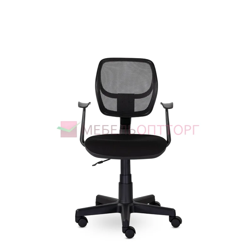 Компактное кресло для дома и офиса. Спинка, обтянутая прочной сеткой, имеет поясничный упор, обладает эффективной воздухопроницаемостью. Возможность регулировать угол наклона спинки и высоту кресла. Удобные Т-образные подлокотники.
