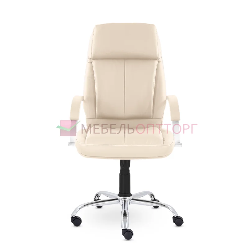 Кресло для настоящих ценителей комфорта! Широкая спинка оснащена увеличенными вертикальными подушками и объемным подголовником. Хромированные подлокотники с мягкими накладками. Солидное кресло отлично будет сочетаться с кабинетом с деревянными элементами в дизайне.