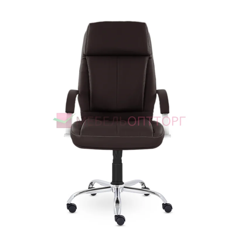Кресло для настоящих ценителей комфорта! Широкая спинка оснащена увеличенными вертикальными подушками и объемным подголовником. Хромированные подлокотники с мягкими накладками. Солидное кресло отлично будет сочетаться с кабинетом с деревянными элементами в дизайне.