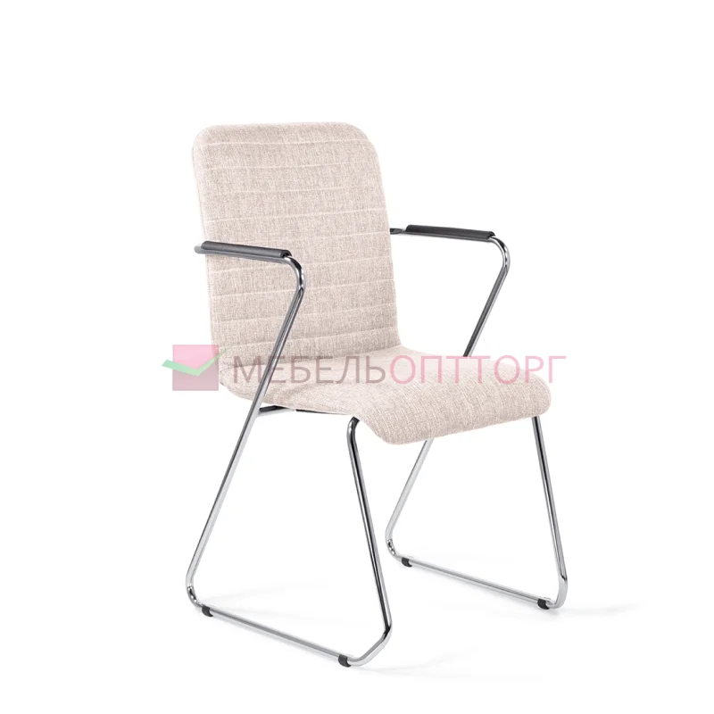 Уникальный каркас из металла и узкие подлокотники с небольшими накладками придают конструкции легкость и прочность. Горизонтальные строчки на спинке подчеркивают элегантный внешний вид. Хромированный каркас выдерживает до 120 кг.