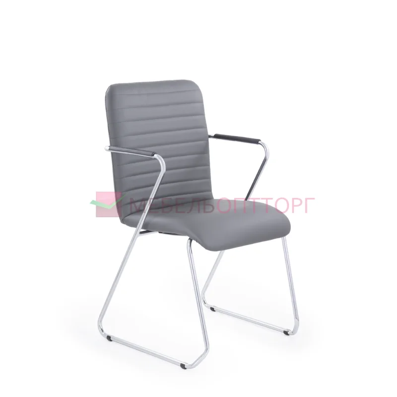 Уникальный каркас из металла и узкие подлокотники с небольшими накладками придают конструкции легкость и прочность. Горизонтальные строчки на спинке подчеркивают элегантный внешний вид. Хромированный каркас выдерживает до 120 кг.