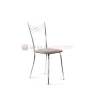 Воздушная модель стула имеет интересный дизайн спинки, представляющую собой крестообразное пресечение нескольких металлических нитей, образующих в центре маленькие ромбики. Каркас стула выполнен из хромированного металла