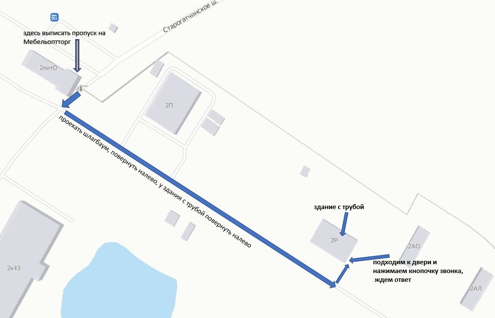 3-На проходной необходимо связаться с кладовщиком по телефону +7 952-246-18-96 или +7(812)777-78-67, сообщить свою Фамилию и Номер заказа. Вас встретят. Далее, предъявить на проходной документы (Паспорт или вод. удостоверение).